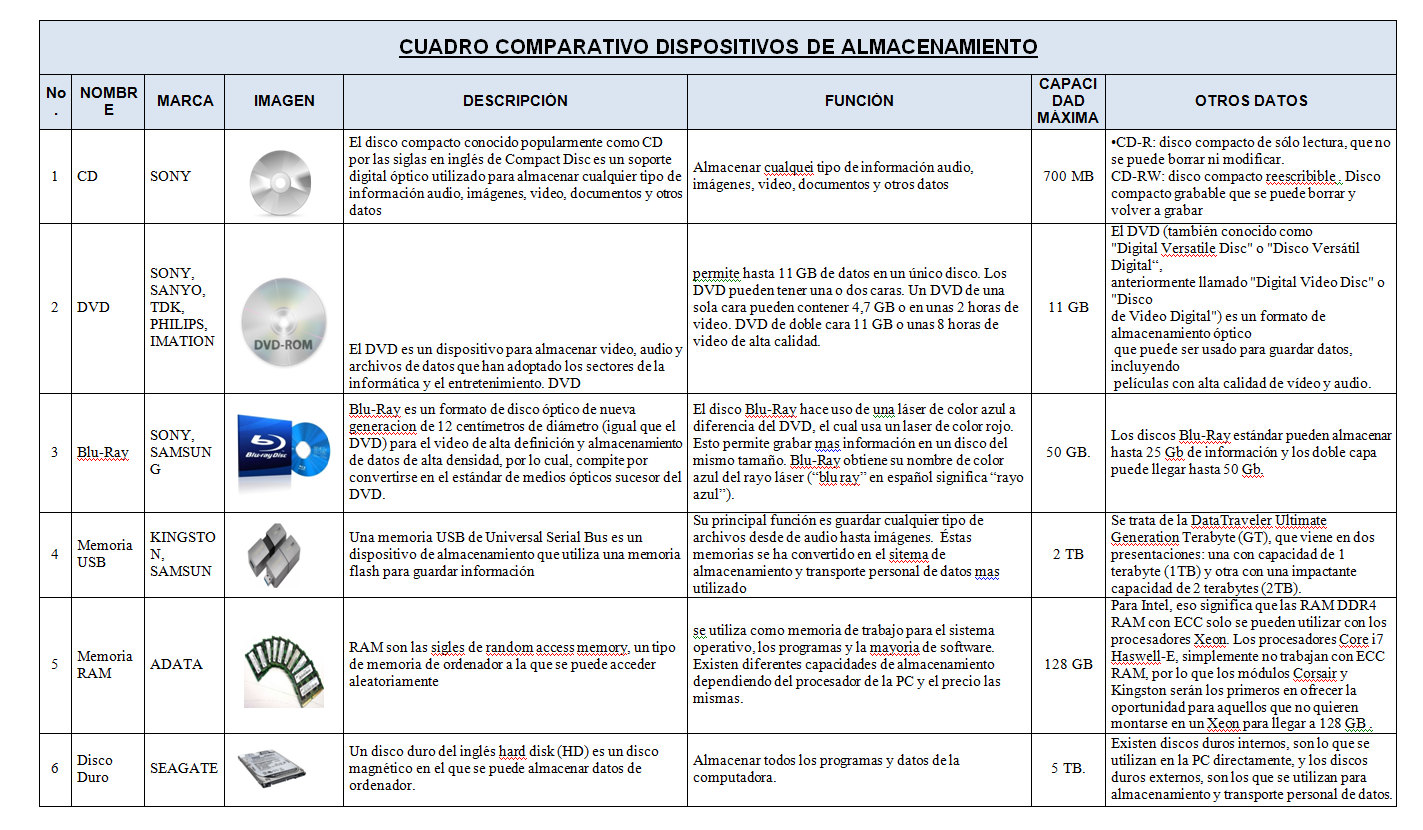Cuadro Comparativo De Dispositivos De Entrada Salida Y Almacenamiento