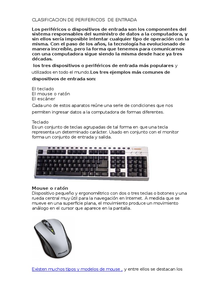 Clasificacion De Perifericos De Entrada Docx Periferico