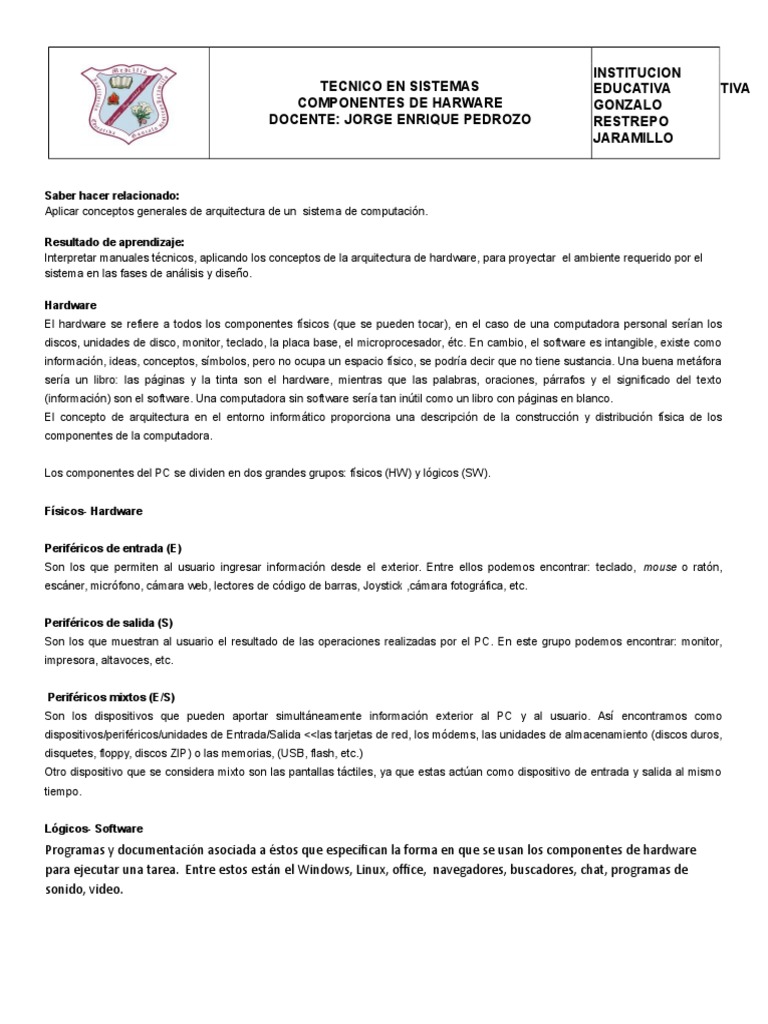 Taller Hardware Doc Periferico Hardware De La Computadora