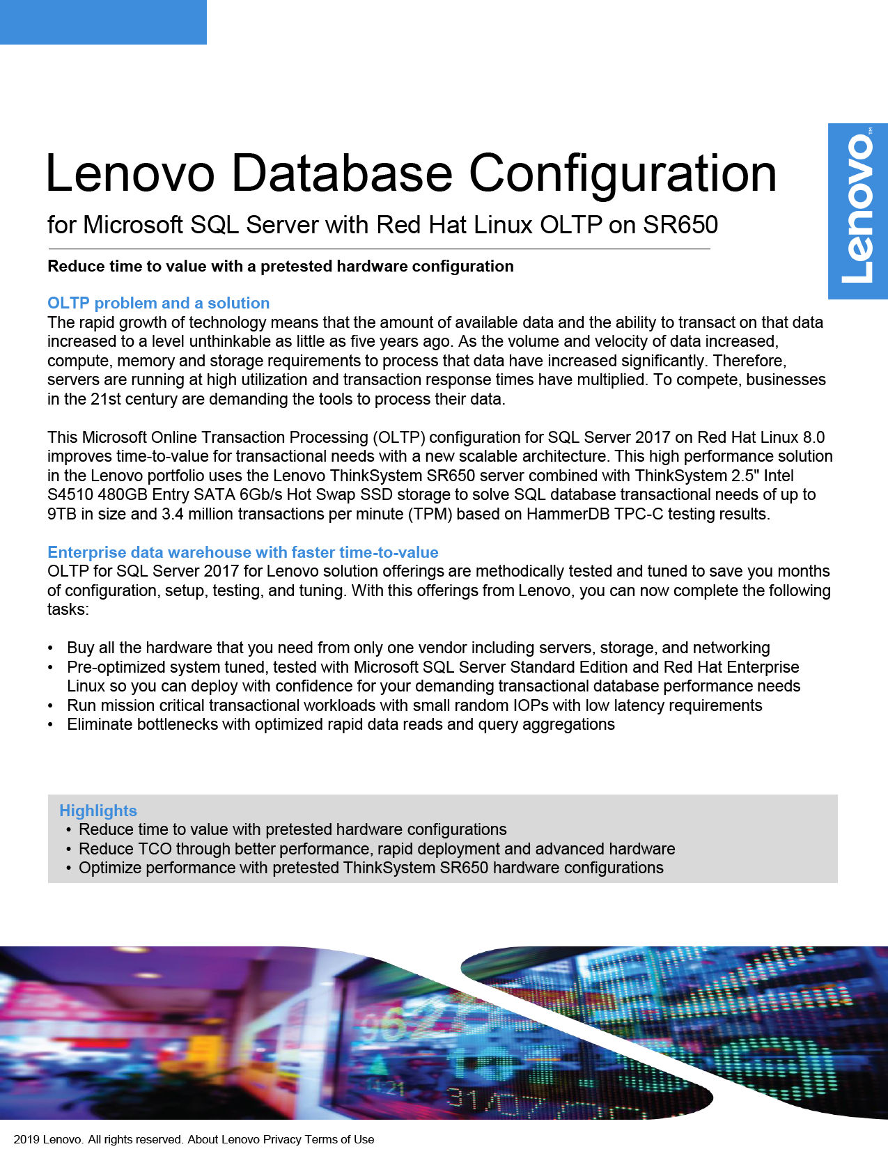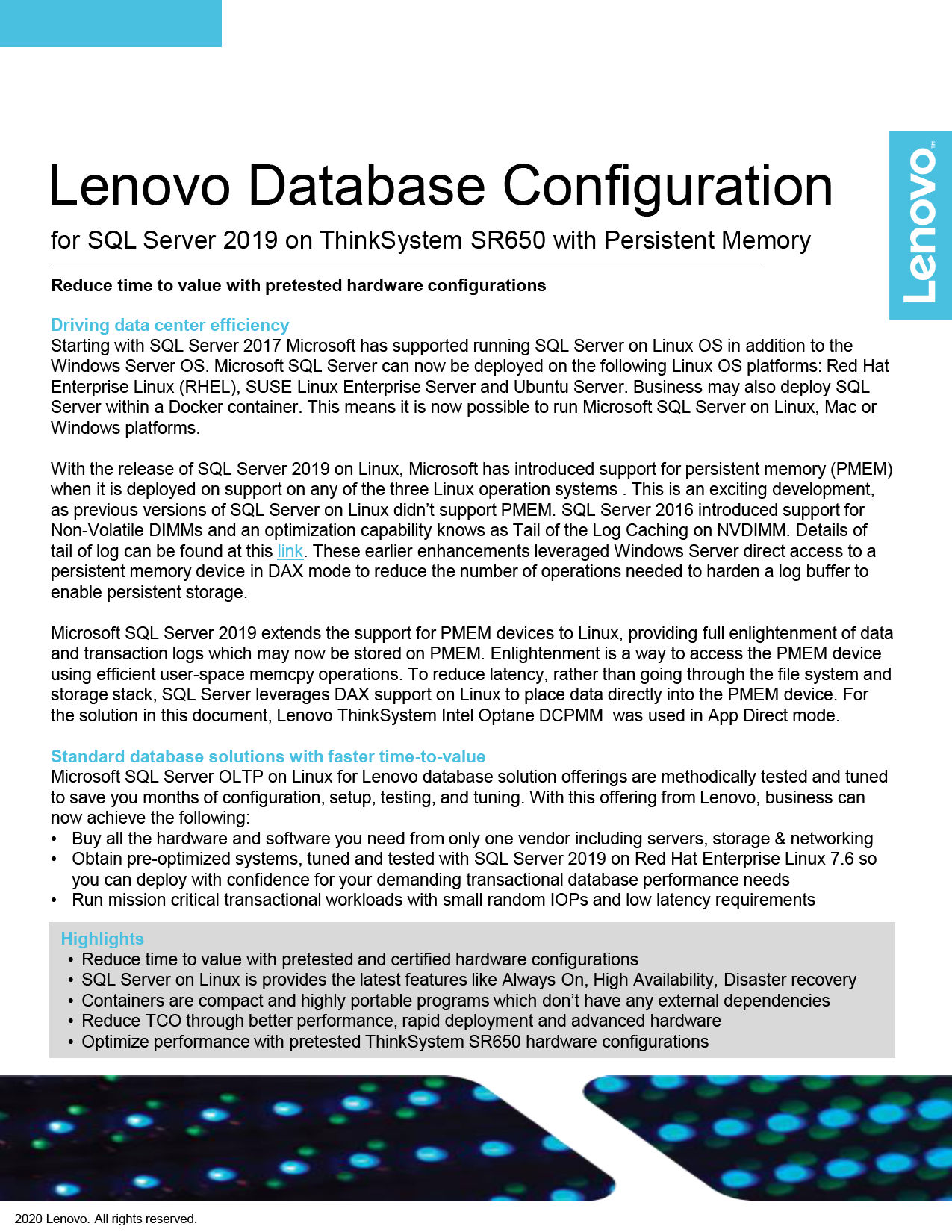 Lenovo Database Configuration For Microsoft Sql Server Oltp On Sr650