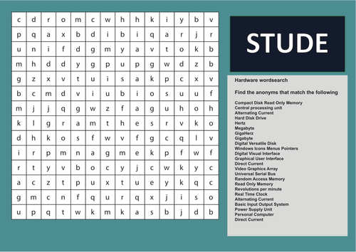 Hardware Definitions Word Search For Ks3 Teaching Resources