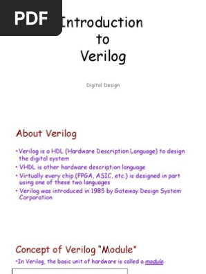 A cross referenced guide to the new and old features is provided. Modules are for us of three types. Hardware description systems could beneļ¬t from advances in programming language design. We ignore the switch level in this course.