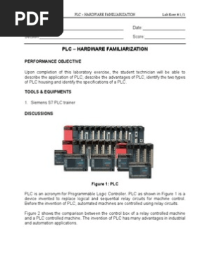 Lab 1 Plc Hardware Familiarization Programmable Logic