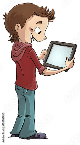 Dibujo De Un Nino Con Una Tableta De Ordenador Aislado